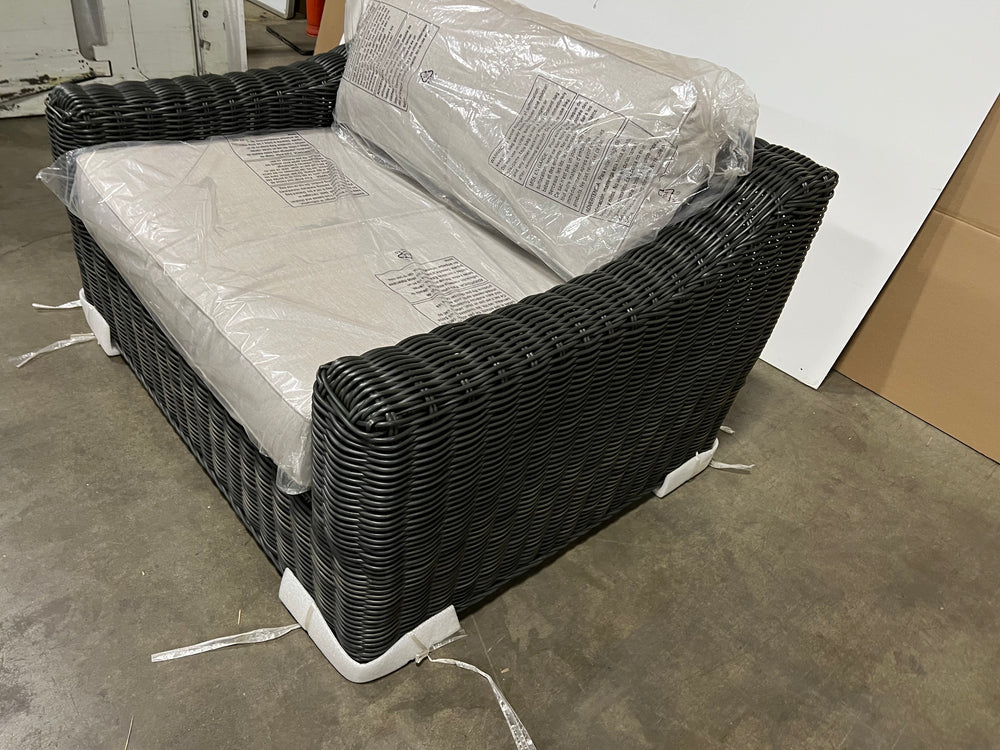 • Charcoal full round rattan with cast silver cushions