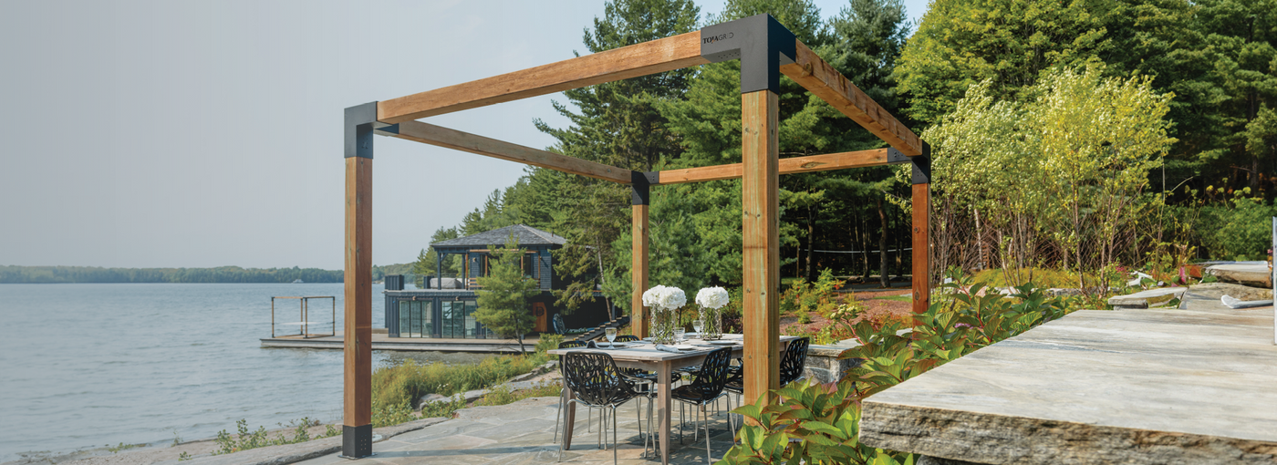 Nous déconseillons d'utiliser plus de 3,6 m de bois, que ce soit en largeur ou en profondeur, pour chaque section de pergola. Nous déconseillons également (sauf exception spécifique indiquée sur la page produit) d'utiliser plus de 2,4 m de bois pour vos poteaux verticaux.